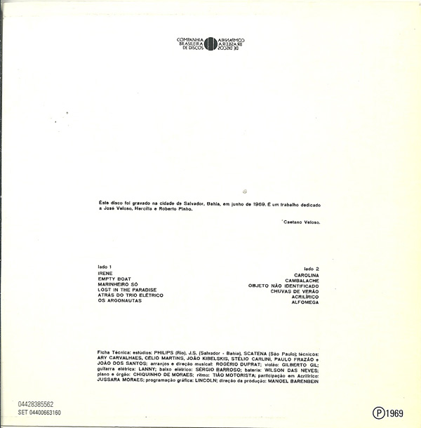 40-disc box set featuring slipcased, CD-size reproductions of the original LPs of Caetano's complete Phillips/Polygram/Universal catalog.