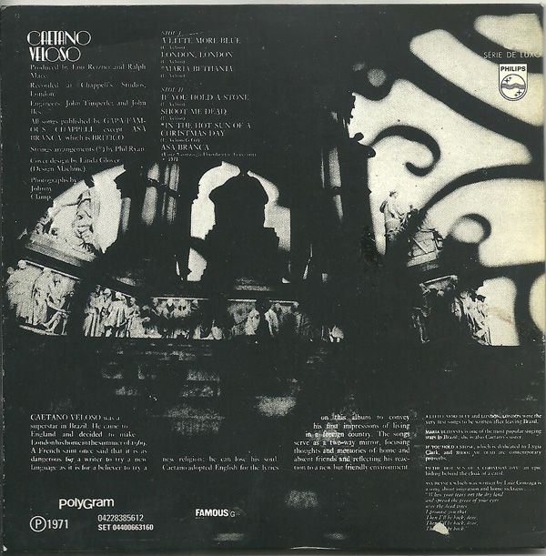 40-disc box set featuring slipcased, CD-size reproductions of the original LPs of Caetano's complete Phillips/Polygram/Universal catalog.