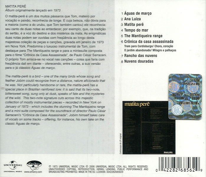 Antônio “Tom” Carlos Brasileiro de Almeida Jobim (Rio de Janeiro, 25 de janeiro de 1927 — Nova Iorque, 8 de dezembro de 1994), mais conhecido como Tom Jobim, foi um compositor, maestro, pianista, cantor, arranjador e violonista brasileiro. É considerado o maior expoente de todos os tempos da música popular brasileira pela revista Rolling Stone, e um dos criadores e principais forças do movimento da bossa nova.