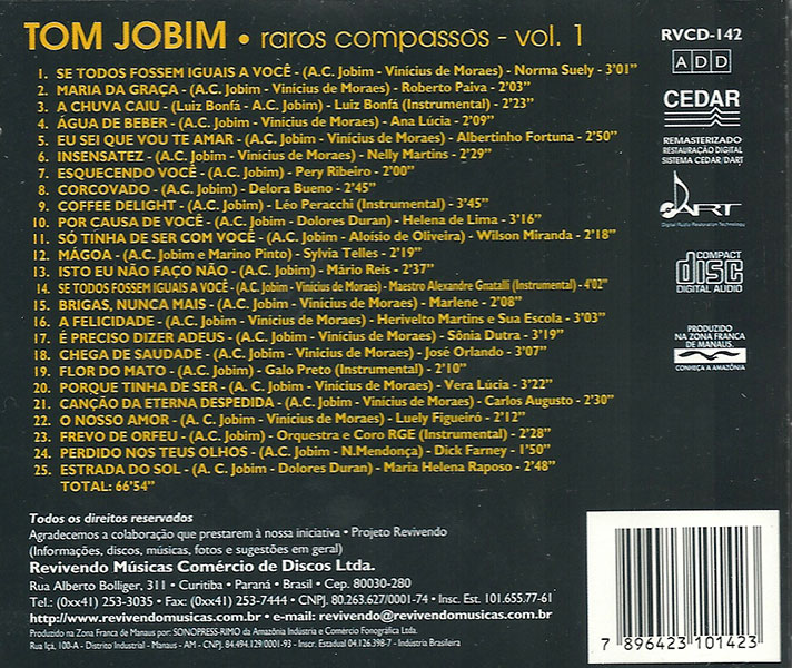 Antônio “Tom” Carlos Brasileiro de Almeida Jobim (Rio de Janeiro, 25 de janeiro de 1927 — Nova Iorque, 8 de dezembro de 1994), mais conhecido como Tom Jobim, foi um compositor, maestro, pianista, cantor, arranjador e violonista brasileiro. É considerado o maior expoente de todos os tempos da música popular brasileira pela revista Rolling Stone, e um dos criadores e principais forças do movimento da bossa nova.