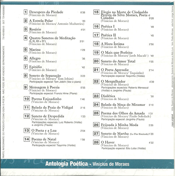 Antologia Poética La voglia, la pazzia, l’incoscienza e l’allegria / Antologia Poética / Tom, Vinicius, Toquinho e Miúcha – gravado ao vivo no Canecão