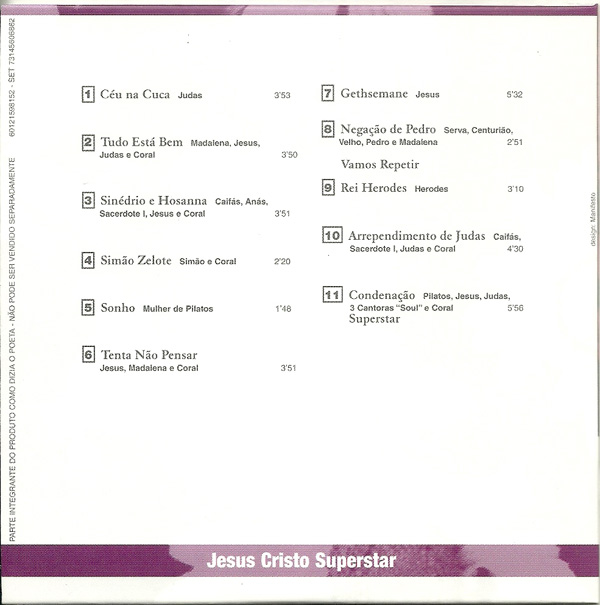 Jesus Cristo Superstar 1972 - Versão feita por Vinicius de Moraes do musical de Andrew Lloyd Weber e Tim Rice Vinicius de Moraes Songbook vol.3 / Jesus Cristo Superstar / Lances de Vinicius 1