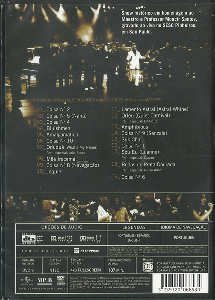 DVD → Moacir Santos Moacir Santos (Flores-PE região do Pajeú, 26 de julho de 1926 — Pasadena, 6 de agosto de 2006) foi um arranjador, compositor, maestro e multi-instrumentista brasileiro.WikipediaApprofondimenti